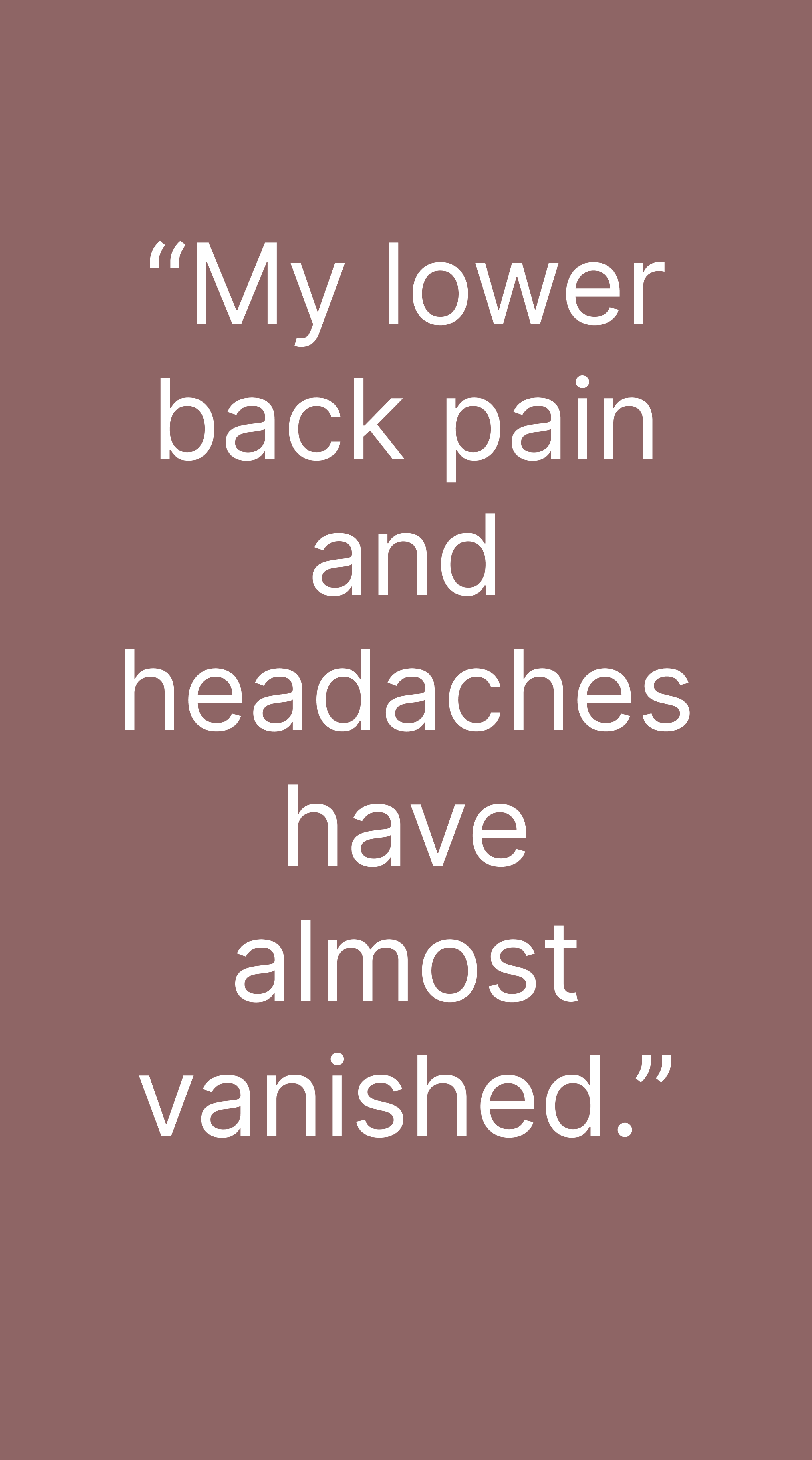 "I've been having back pain for a few years, and I attribute a lot of it to my job - lots of heavy lifting, manual work, standing - however I knew it was also from poor postural habits I didn't know how to correct. I've tried physios, dry needle therapy, acupuncturists, ortho-bionomy, massage - they were all short term helpful, but nothing was changing the habits that seemed to cause the problem. The pain was getting to an unsustainable point - waking up in pain and going to bed in pain.