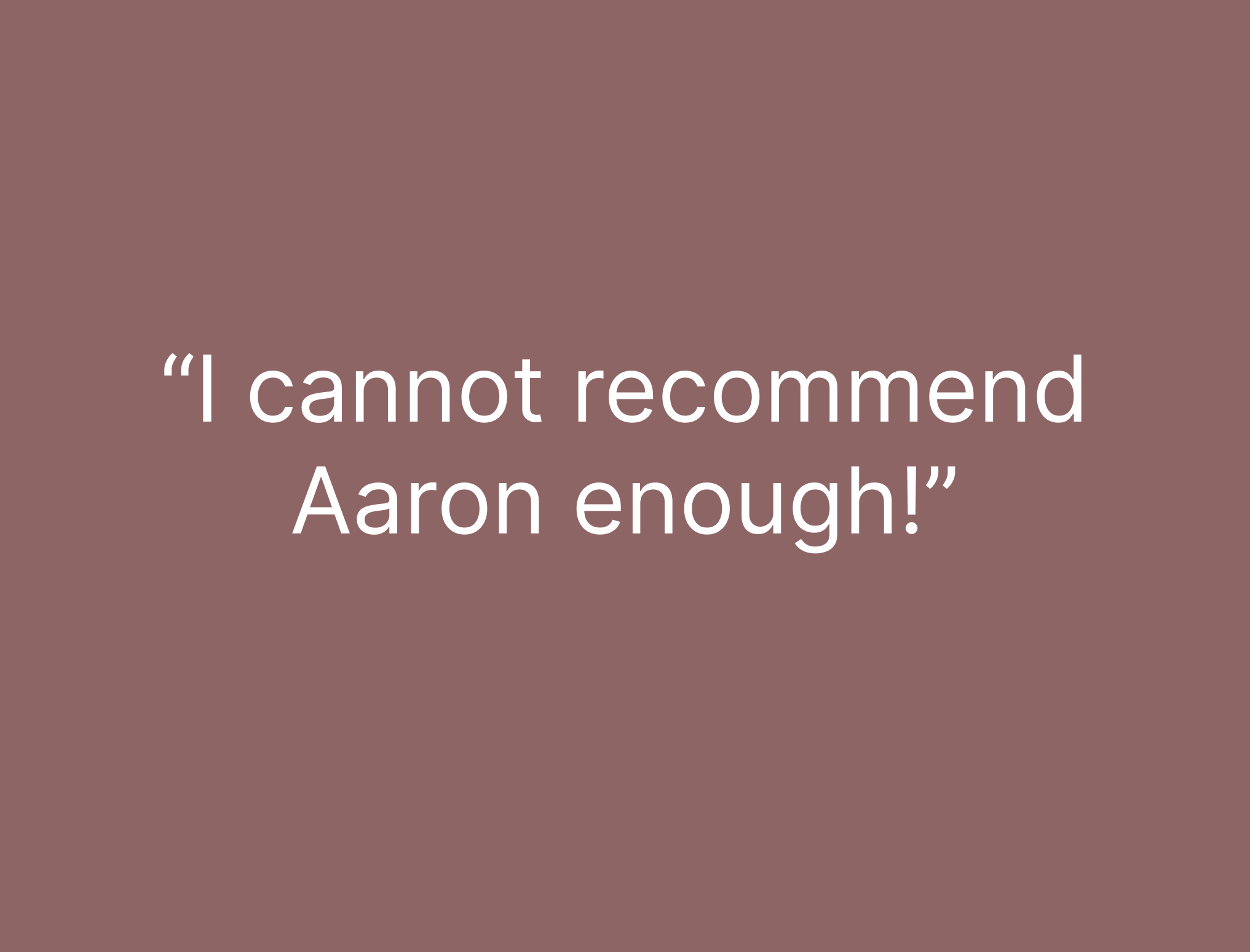 I have a history of PTSD and an eating disorder, and was extremely nervous to work with a man. In fact, I canceled the first two sessions we had scheduled because I was too scared to even meet him. However, Aaron came to the sessions with so much patience, compassion, and empathy that I never felt uncomfortable for even a second.